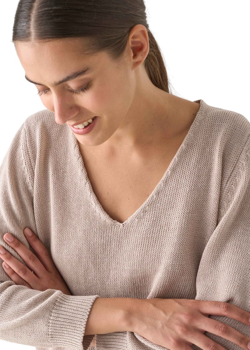 Anneclaire pull trui v-hals dames beige – Maattabel: Italiaans