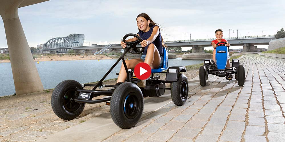 Profitez des excellentes caractéristiques de conduite du Basic. Le mécanisme à bille dans les commandes vous aide à choisir votre piste idéale. Même dans les virages les plus serrés, les pneus pneumatiques robustes et l’essieu oscillant offrent adhérence, équilibre et stabilité. Même les bosses sur votre piste sont prisent avec facilité. La conduite est sûre et confortable. Et si vous devez ralentir, vous pouvez utiliser le frein à rétropédalage ou simplement tirer sur le frein à main. Le Basic Pure et le Basic Rapid sont tous deux disponibles en bleu. Le Rapid a deux garde-boues robustes en supplément. Aimez-vous un design aérodynamique ? Alors optez pour le Super, avec un spoiler avant cool, des ailes arrière et disponible en trois couleurs différentes : bleu, jaune et rouge. Vous souhaitez pouvoir faire du karting à deux ? Alors les sièges passagers rouges, bleus ou jaunes sont faits pour vous !