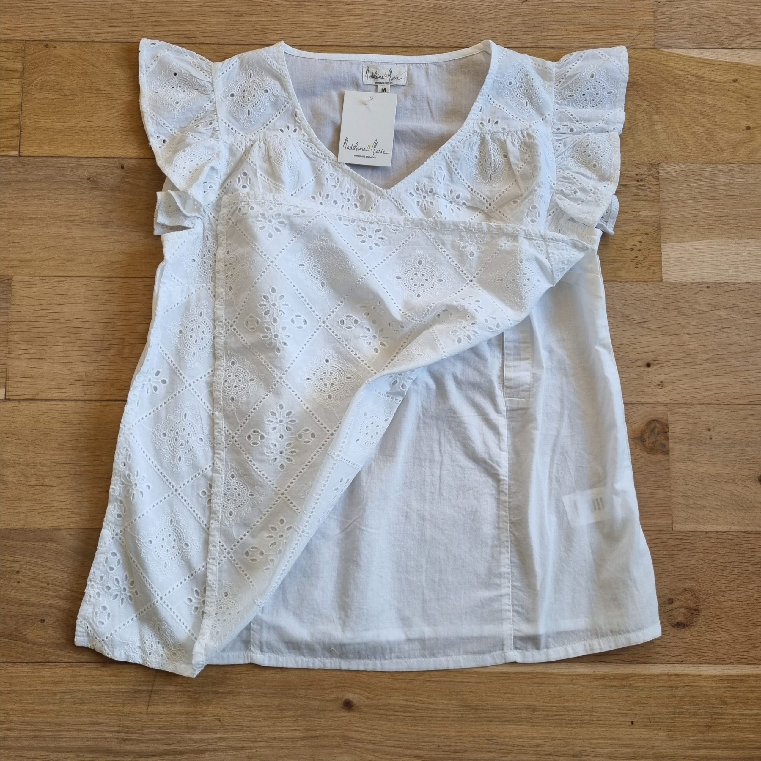 Blouse allaitement – broderie anglaise – blanc