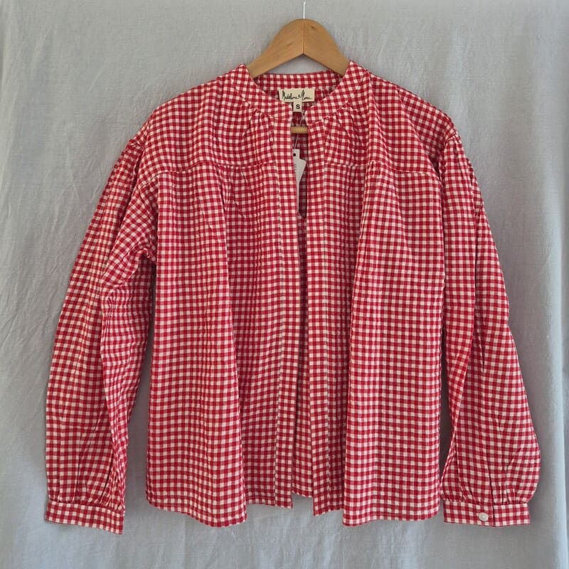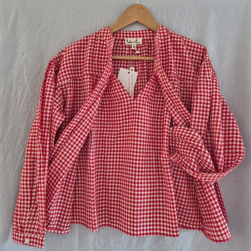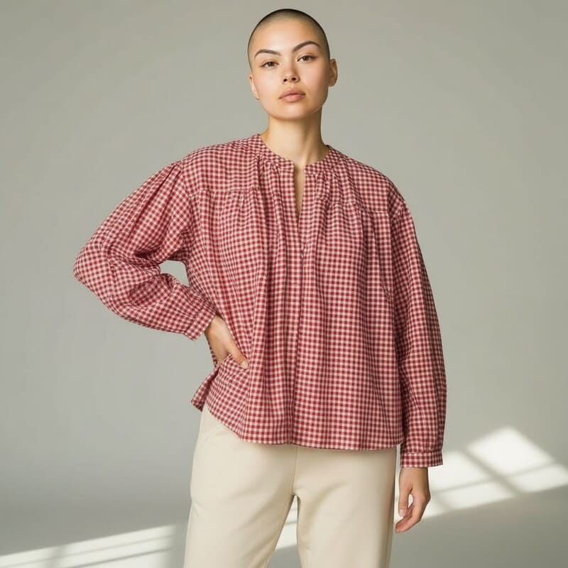 Blouse allaitement coton – petits carreaux rouges et blancs