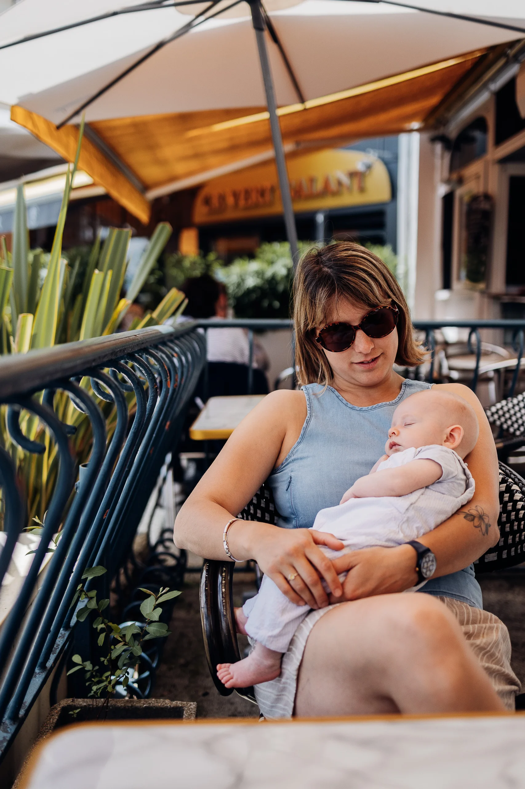 - Deux ouvertures zip verticales à l’extérieur de la poitrine pour faciliter l’allaitement.