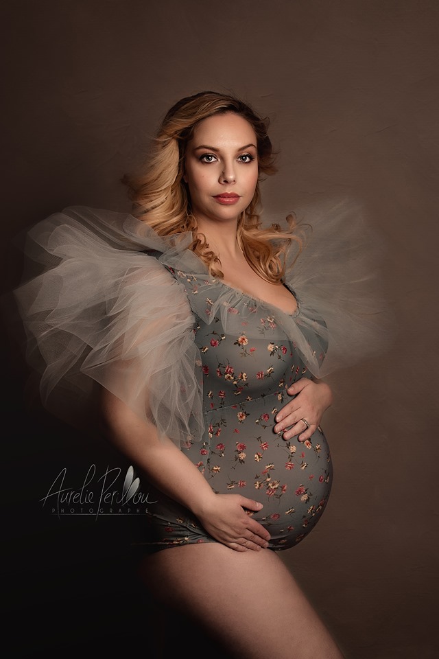 Création Bodysuit en Jersey Fleuri – “Dream of Elodie” Ce Bodysuit en jersey fleuri est très extensible, de couleur gris/vert (sauge) , orné de plusieurs volants de tulle de couleur assortie au body. Cette création raffinée, romantique et glamour est conçue pour vos shooting grossesse. Vous pouvez aussi l’utiliser dans le cadre d’un shooting fine […]