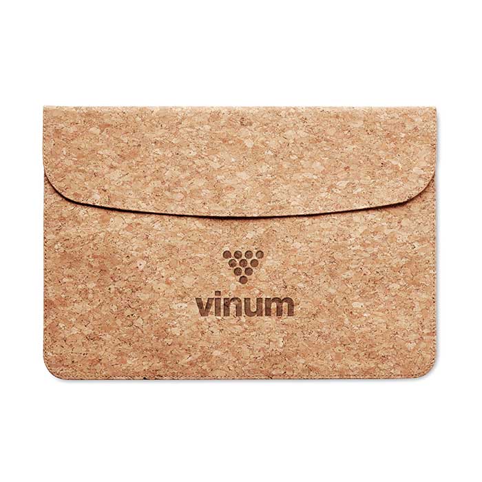 Sacoche en liège pour ordinateur portable 14 pouces avec rabat à fermeture magnétique.