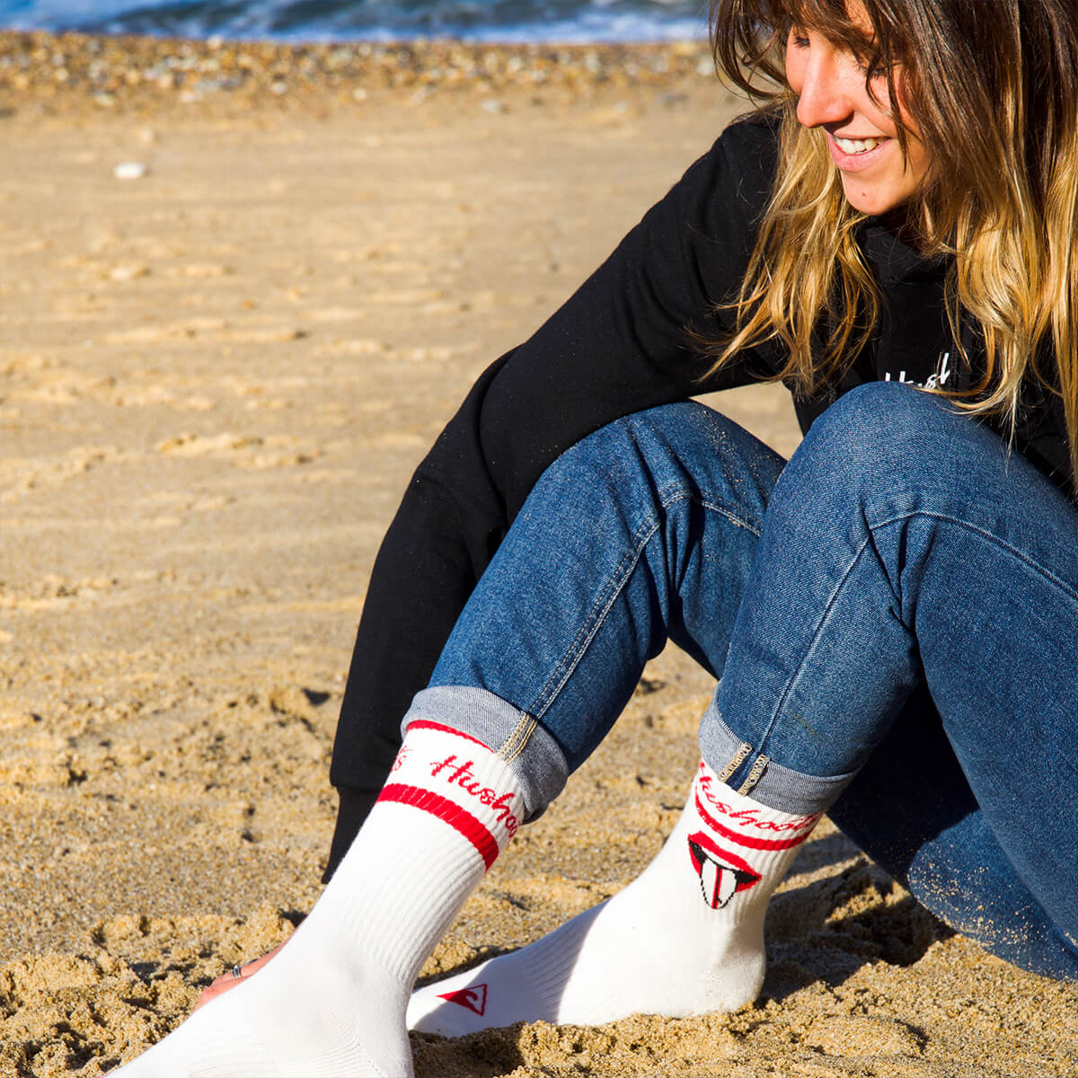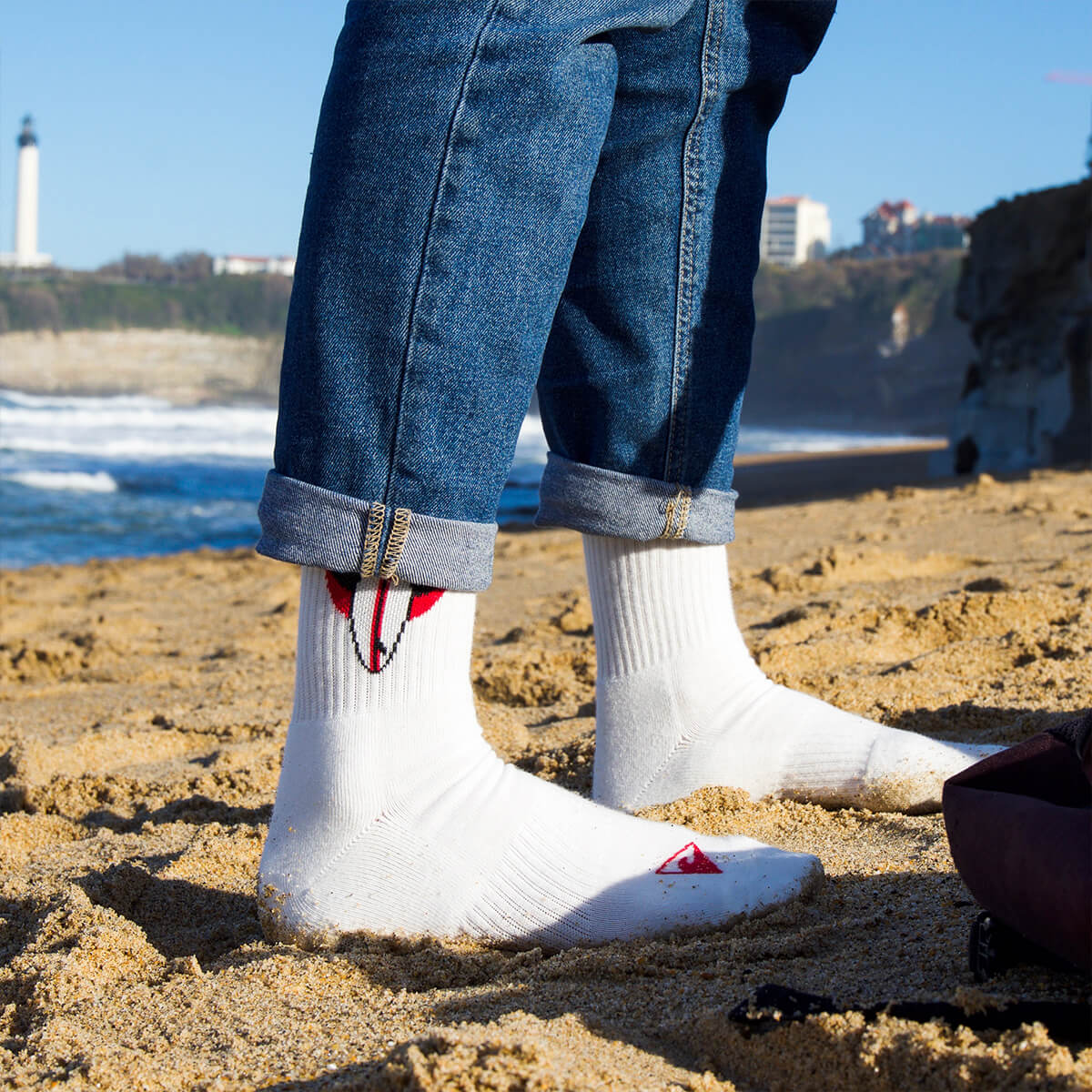 Chaussettes Hushoots montantes blanches et rouges. FABRICATION LOCALE Ces chaussettes sont fabriquées en France, près de Limoges dans l’atelier de Mathilde et son équipe à moins de 400 km de Biarritz. Ces chaussettes soutiennent l’emploi local. DESCRIPTION Couleur : Blanc / Rouge 78% Coton Biologique – 18% Polyamide – 4% Élasthanne Indications de lavage : […]