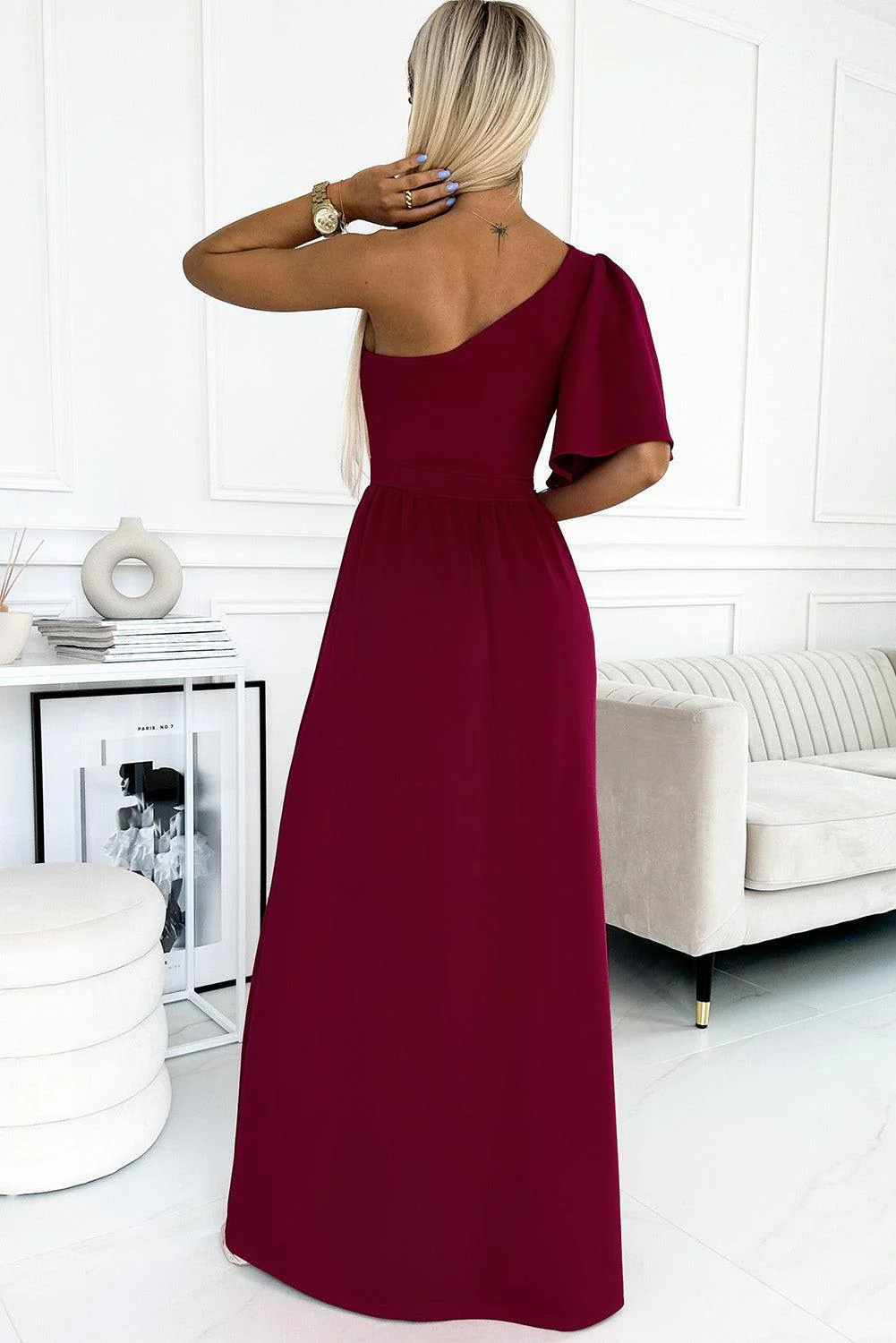 Ressentez-vous confiante et élégante avec Clara | Robe Maxi à Manches Froncées et Fente