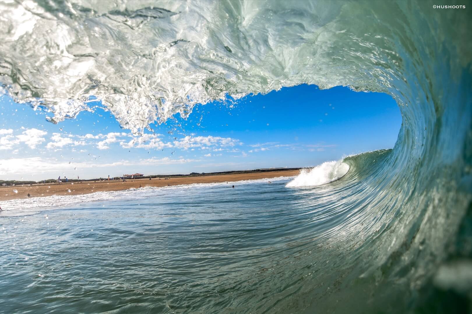 Poster de surf : la vue recherchée par tous les surfeurs… Une vision depuis un gros tube aux Cavaliers à Anglet durant l’été 2018…