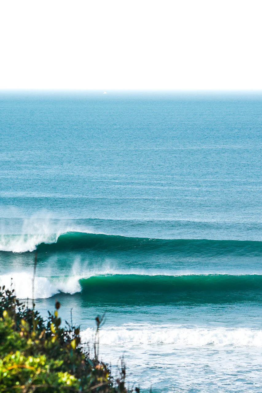 Poster de surf : en se baladant au Pays Basque, il peut arriver de trouver un peak magique et vierge pour le surfer entre amis.