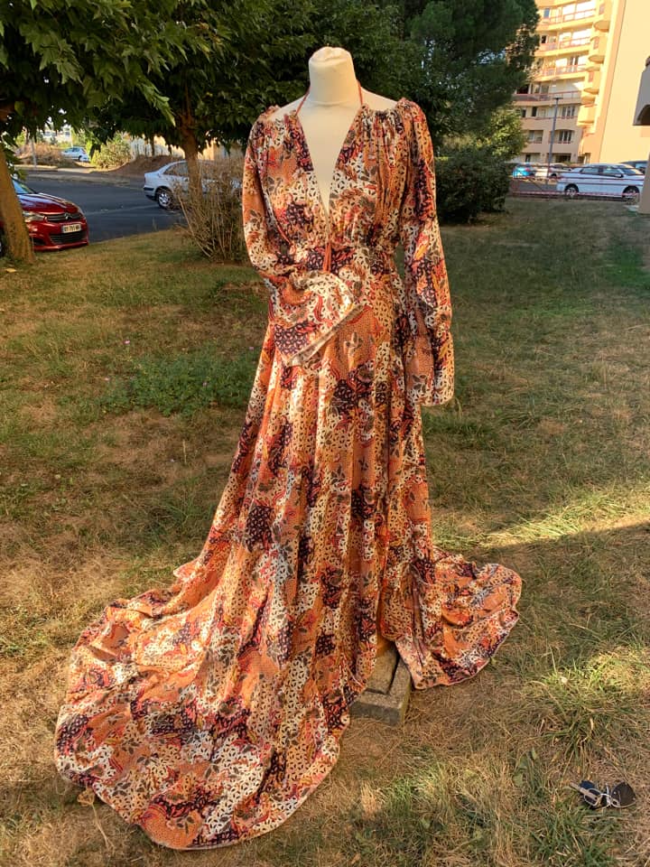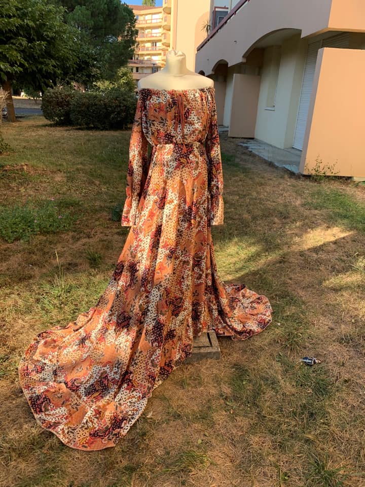 L’ensemble “New Season is Coming” incarne l’élégance automnale avec son tissu doux, léger et aérien, tout en étant non transparent. Ce tissu de qualité supérieure, en viscose, présente de magnifiques couleurs automnales rehaussées de subtiles touches dorées. Vous pouvez admirer les détails de ce tissu unique dans la galerie de photos.