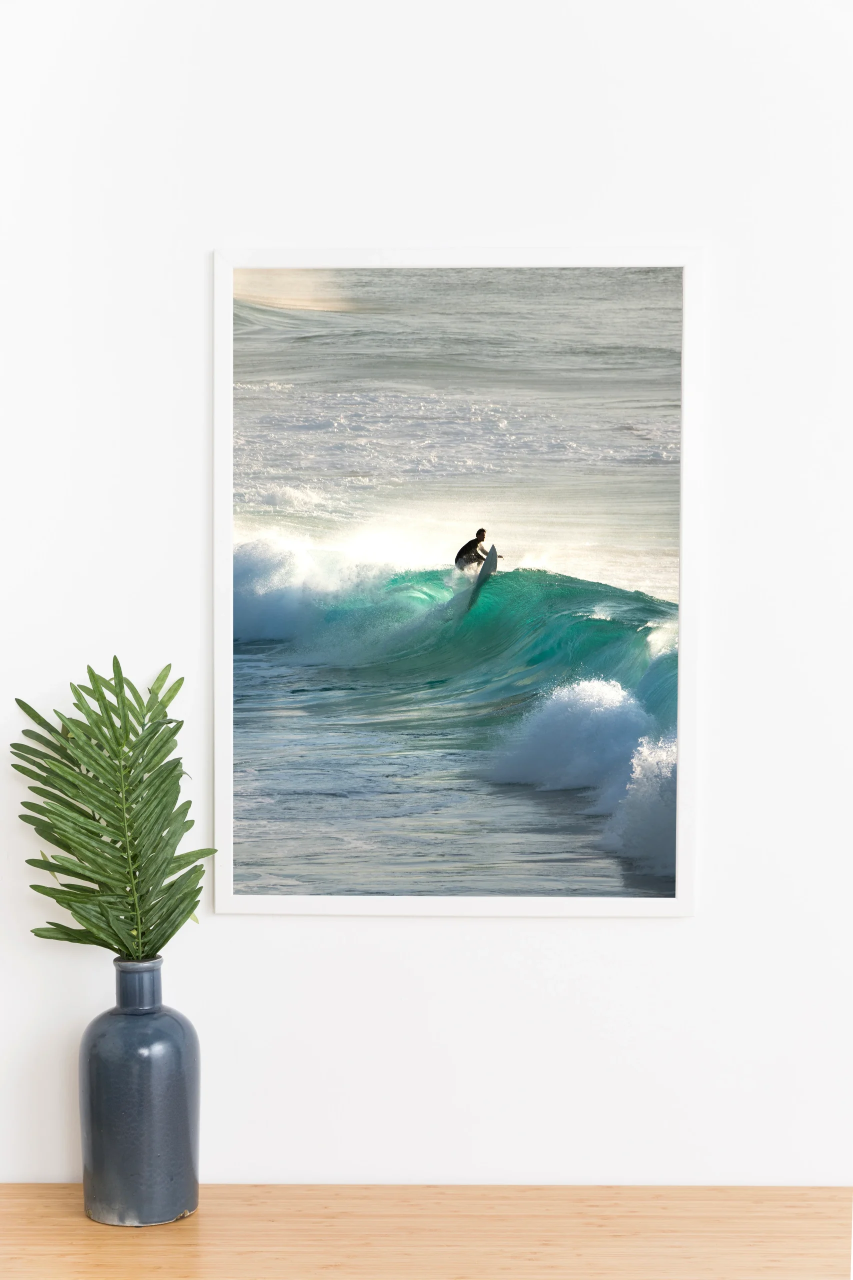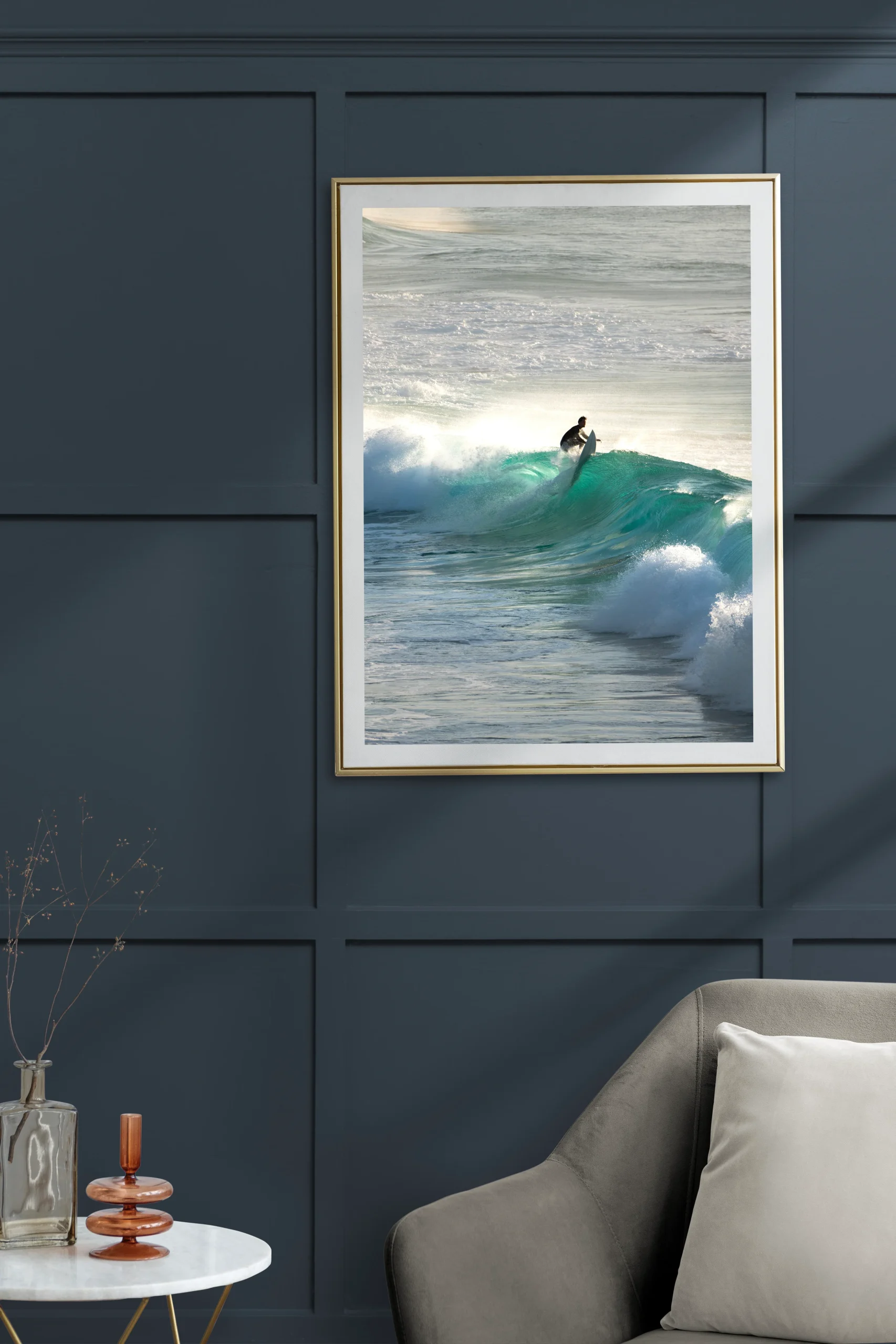 Apporte une touche de surf et d’océan à ta décoration intérieure avec ce poster, qui immortalise cette sortie de vague avant le close out. Ce cliché fige cette vague éclairée par les rayons du soleil levant.
