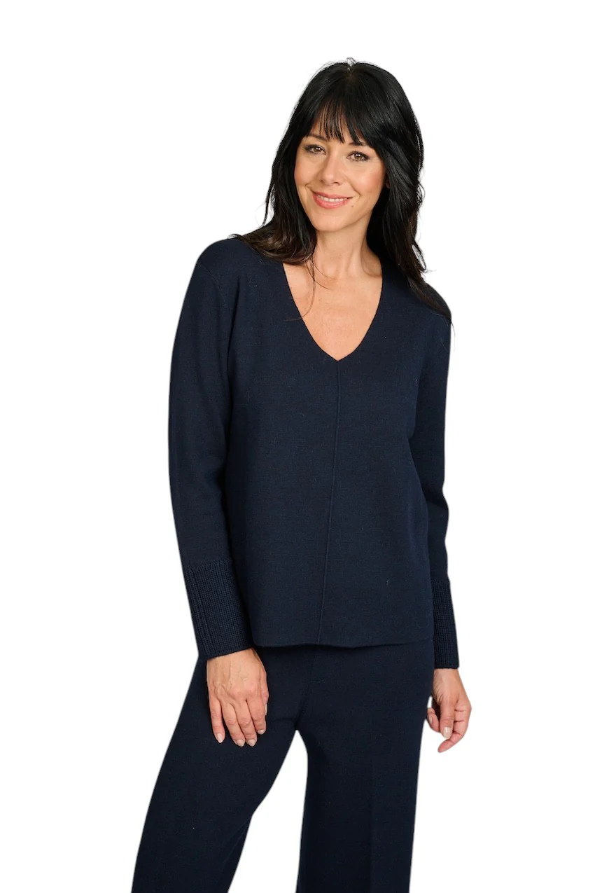 Gran Sasso Femmes pull-over col en v marine pour femmes