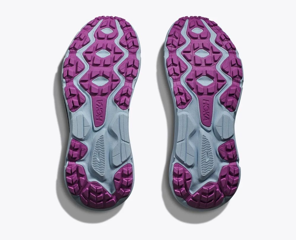 À la fois légère et fluide grâce à la géométrie de sa semelle intercalaire en mousse CMEVA, la Challenger ATR 7 Meteor Night Sky absorbe parfaitement bien les chocs tout en vous offrant un rebond dynamique qui vous propulsera vers l’avant, que le terrain soit plat et lisse ou plus technique. Côté accroche, sa semelle extérieure possède une excellente adhérence grâce à ses crampons de 4mm stratégiquement placés. Idéale pour passer d’un terrain à l’autre, cette chaussure Hoka One One offre une transition fluide et agréable, et sera le modèle parfait pour vos sorties mixtes qui mêlent bitume et sentiers.