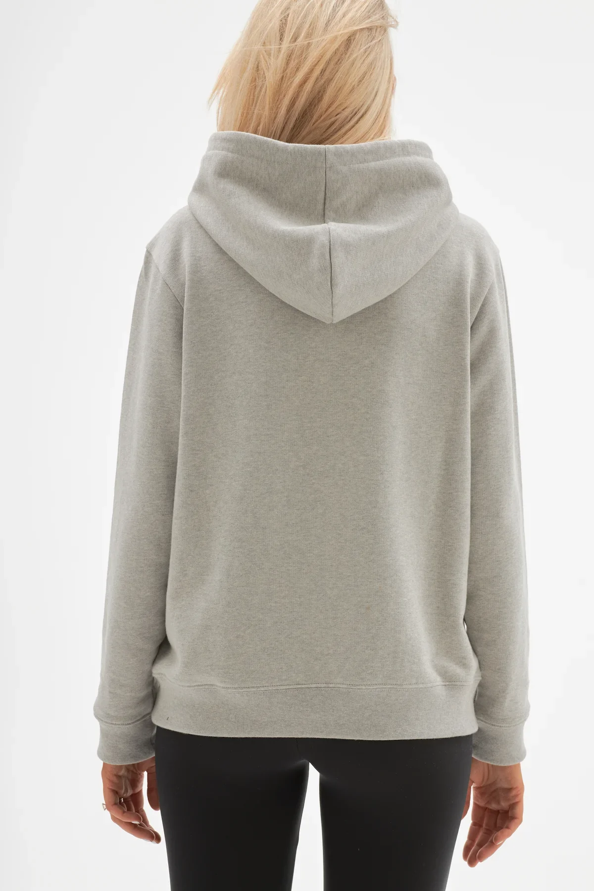 Stephanie mesure 1m78 et porte le hoodie en taille L pour un effet loose.