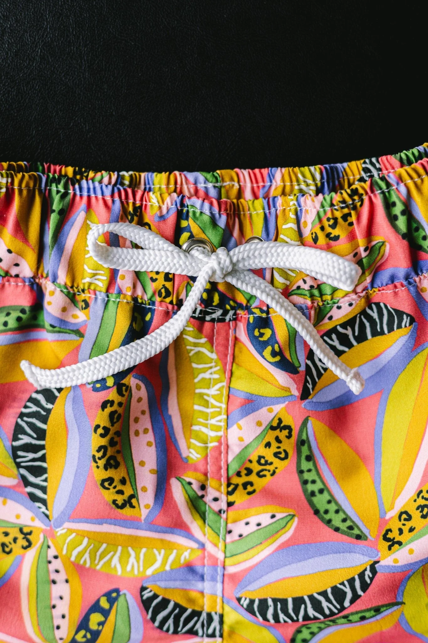 « James » c’est un short de bain anti-UV éco-conçu à partir de fibres 100% polyester recyclé et recyclable dédié à nos clients homme. Coupe à la fois classique et confortable, ceinture élastique à resserrer par un cordon, poches côté. Le short de bain James est ici proposé dans notre nouvel imprimé 2026 « Tropical ». Un imprimé inspiré du style « Wax », ce tissu africain aux couleurs vives et contrastées à retrouver sur le reste de nos gammes femme et enfant pour s’amuser en famille avec des looks identiques.
