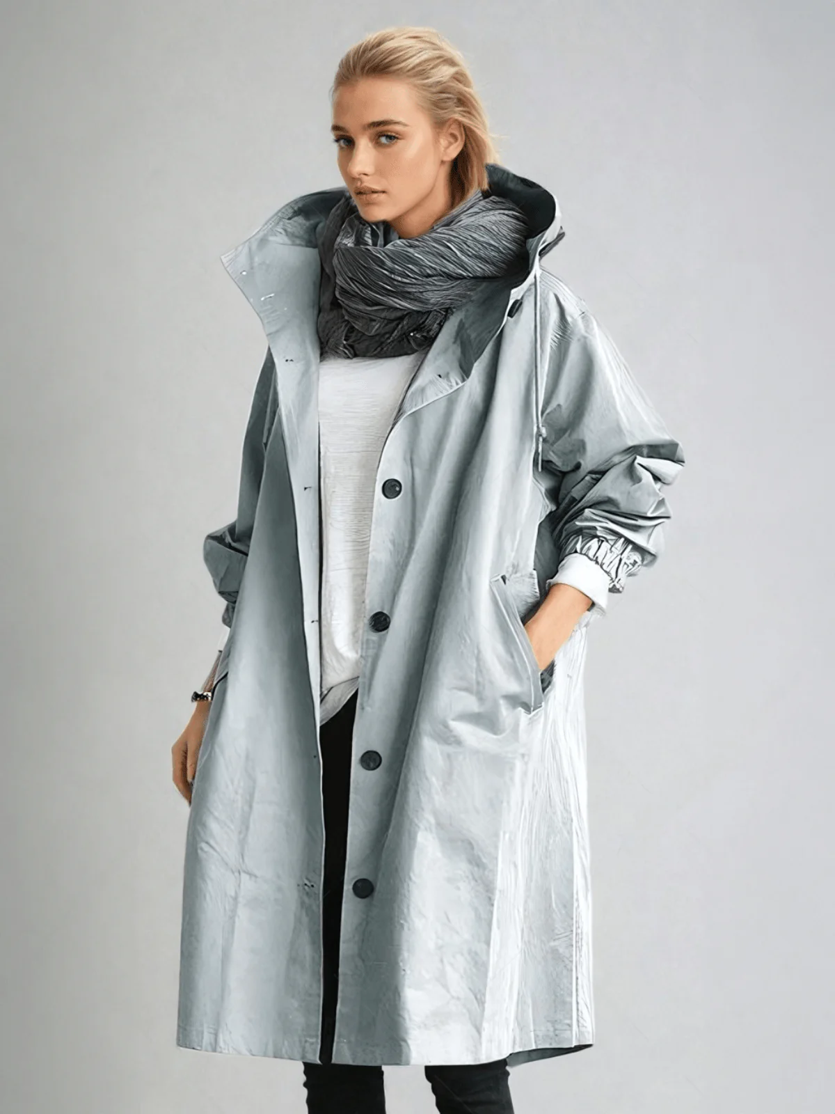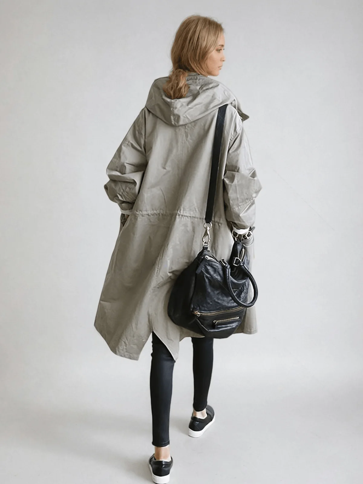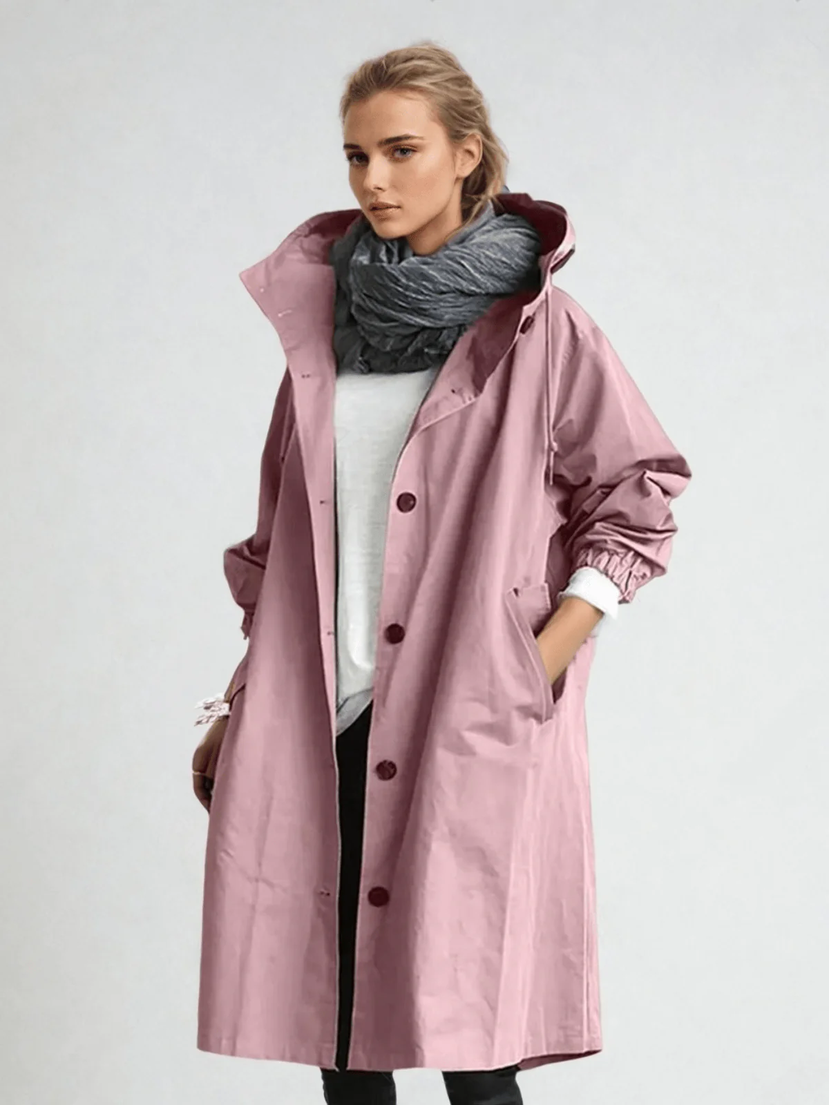 Stay dry without compromising on fashion with this trendy oversized rain jacket. Made from lightweight, water-repellent material, it provides reliable protection even in bad weather. Elastic cuffs allow easy sleeve adjustment, and the drawstring hood adds extra style and protection.