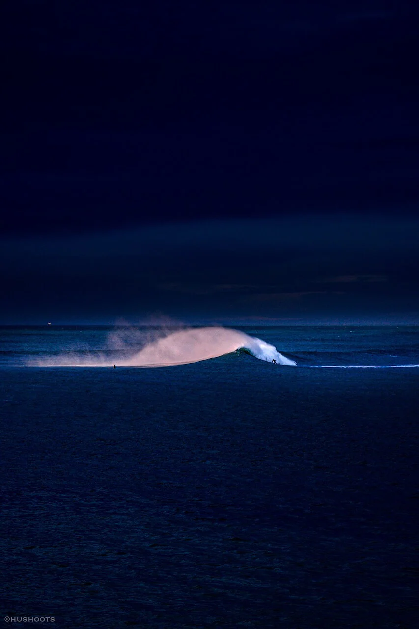 Tableau de surf : Ce qui nous surprendra toujours à Guéthary, c’est que, qu’importe la taille des vagues, les locaux en profitent toujours jusqu’à la derrière lueur du jour.