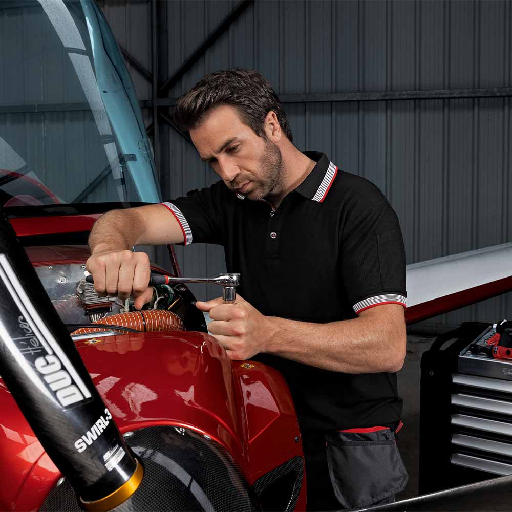 Le polo SOCCER Noir FACOM de la marque Facom Workwear offre à la fois un excellent confort et une bonne durabilité grâce à son tissu en maille piquée coton polyester qui sèche rapidement. Son col polo se ferme par deux boutons. Il possède une poche stylo et un marquage sérigraphié “Facom” sur la manche ainsi que des fentes sur les côtés.