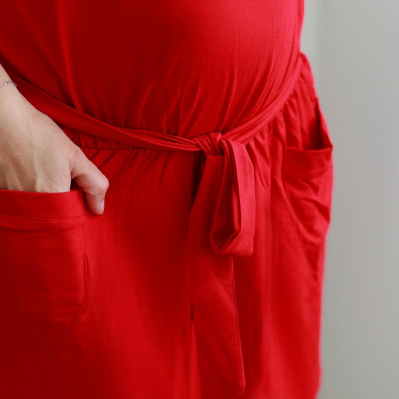 Robe grossesse découpe sous ventre avec ceinture.