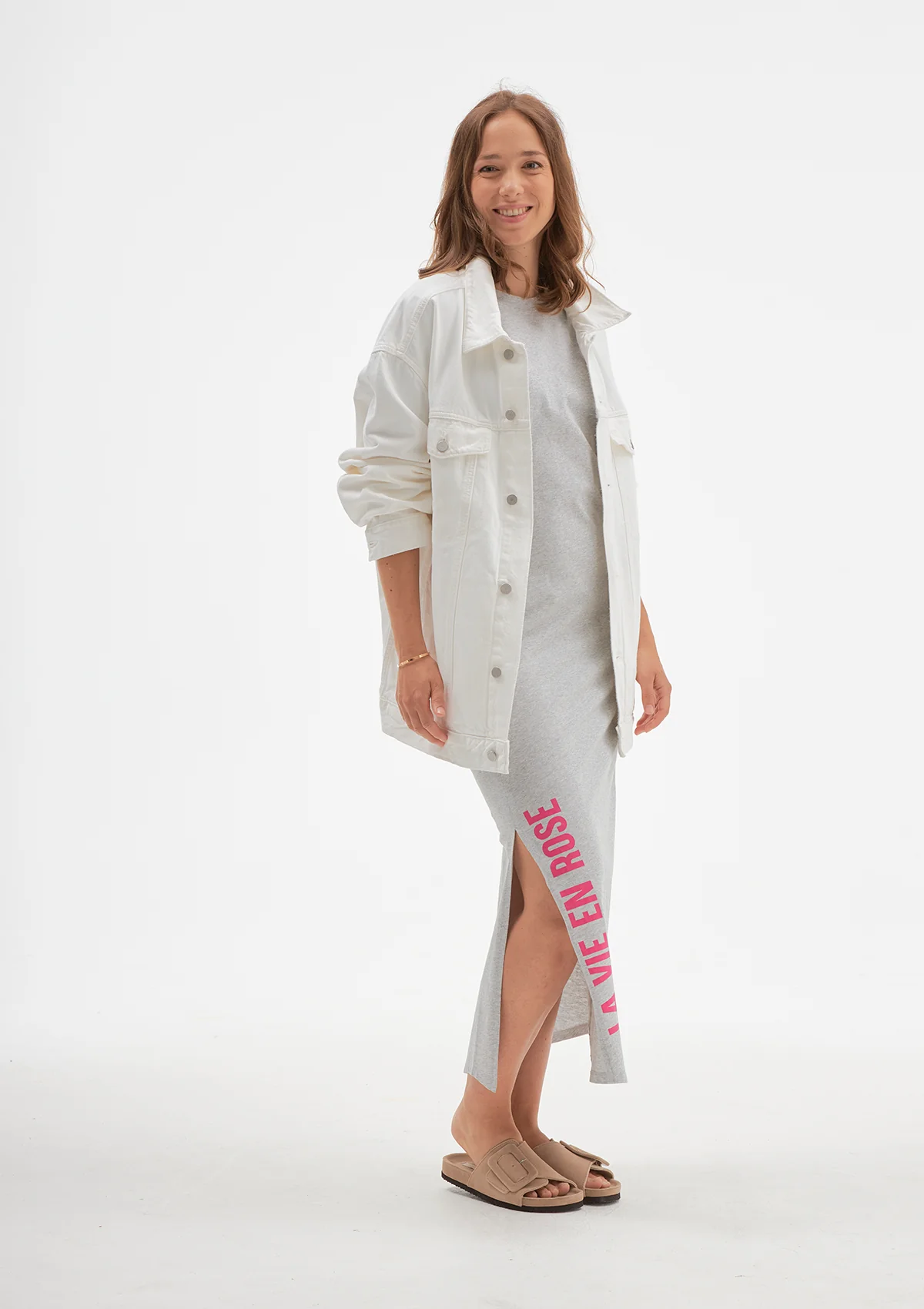 La vie en rose se porte près du corp. Si vous voulez cacher ces petites rondeurs post partum, prenez 1 taille au-dessus.