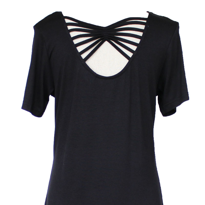 Jolie encolure ronde à l’avant et biais resserrés pour fermer le dos.