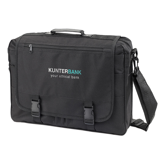 Porte-documents multi-poches en polyester 600D. Bandoulière ajustable amovible.