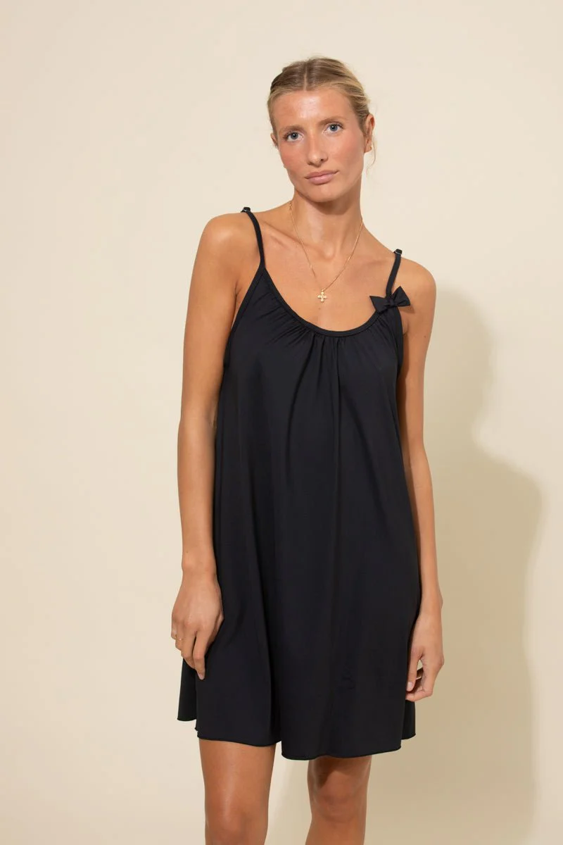 Sirocco c’est la petite robe anti-UV à laquelle on pense quand arrivent les beaux jours et les sorties en tenues légères alors que l’on doit se protéger des premiers rayons du soleil. À enfiler sur un maillot de bain ou comme n’importe quelle robe à fines bretelles pour partir en balade, Sirocco se porte en toutes circonstances. Robe UPF50+ confortable et pratique grâce à ses bretelles réglables qui s’ajustent à la longueur de votre buste. Notre mannequin mesure 1,70 mètre. Ici en noir, un coloris intemporel, toujours chic.