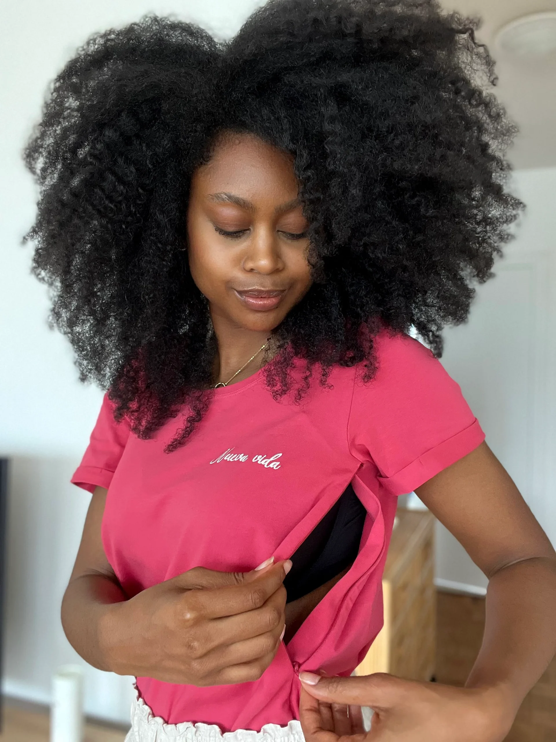 T-shirt d’allaitement coton biologique – Nueva Vida | Corail épicé