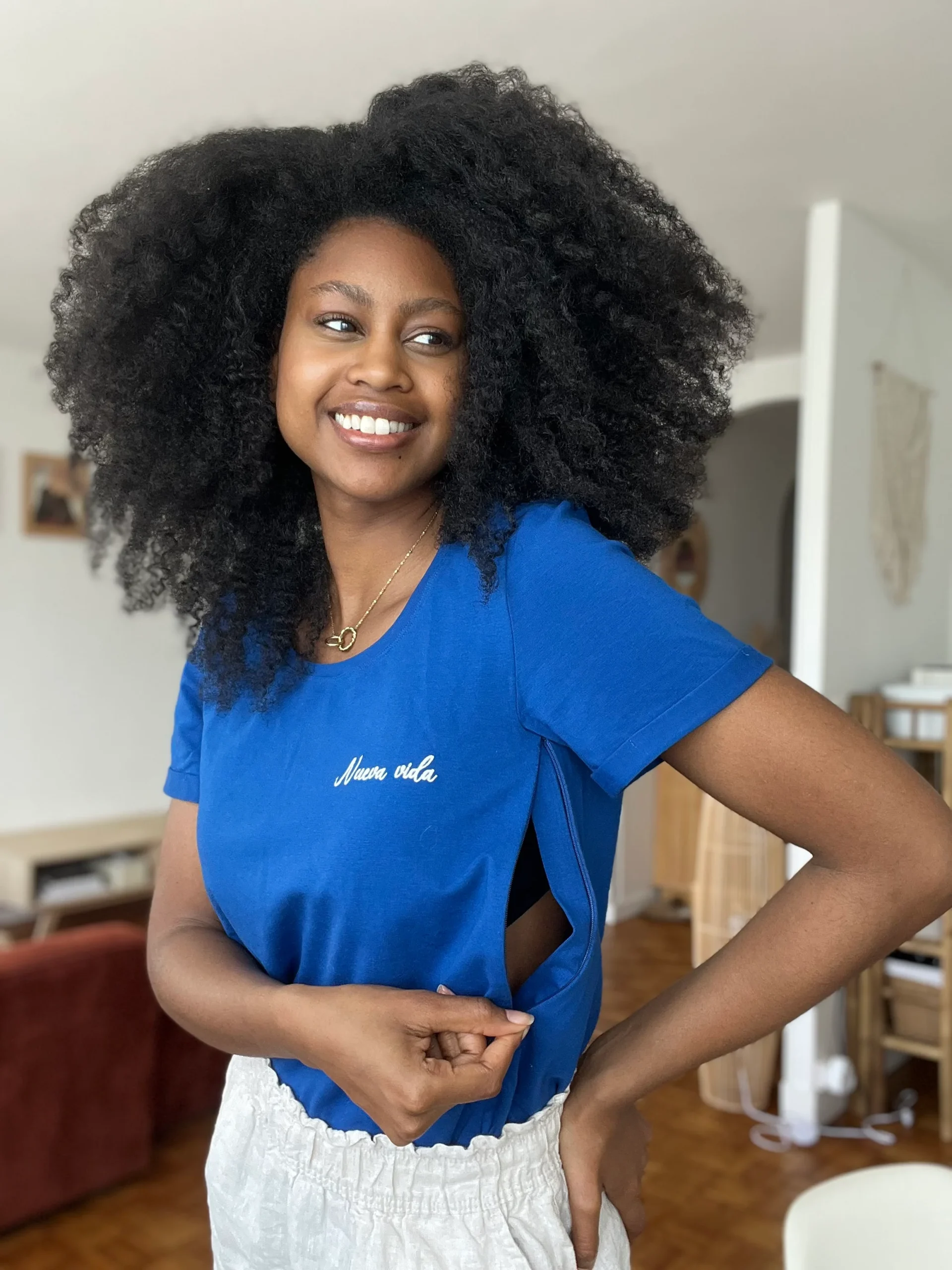 Le T-shirt Nueva vida (Nouvelle vie) est LE basic par excellence à avoir dans sa garde robe. Il vous accompagnera tout au long de votre grossesse, votre allaitement, votre post partum et de votre nouvelle vie qui commence…