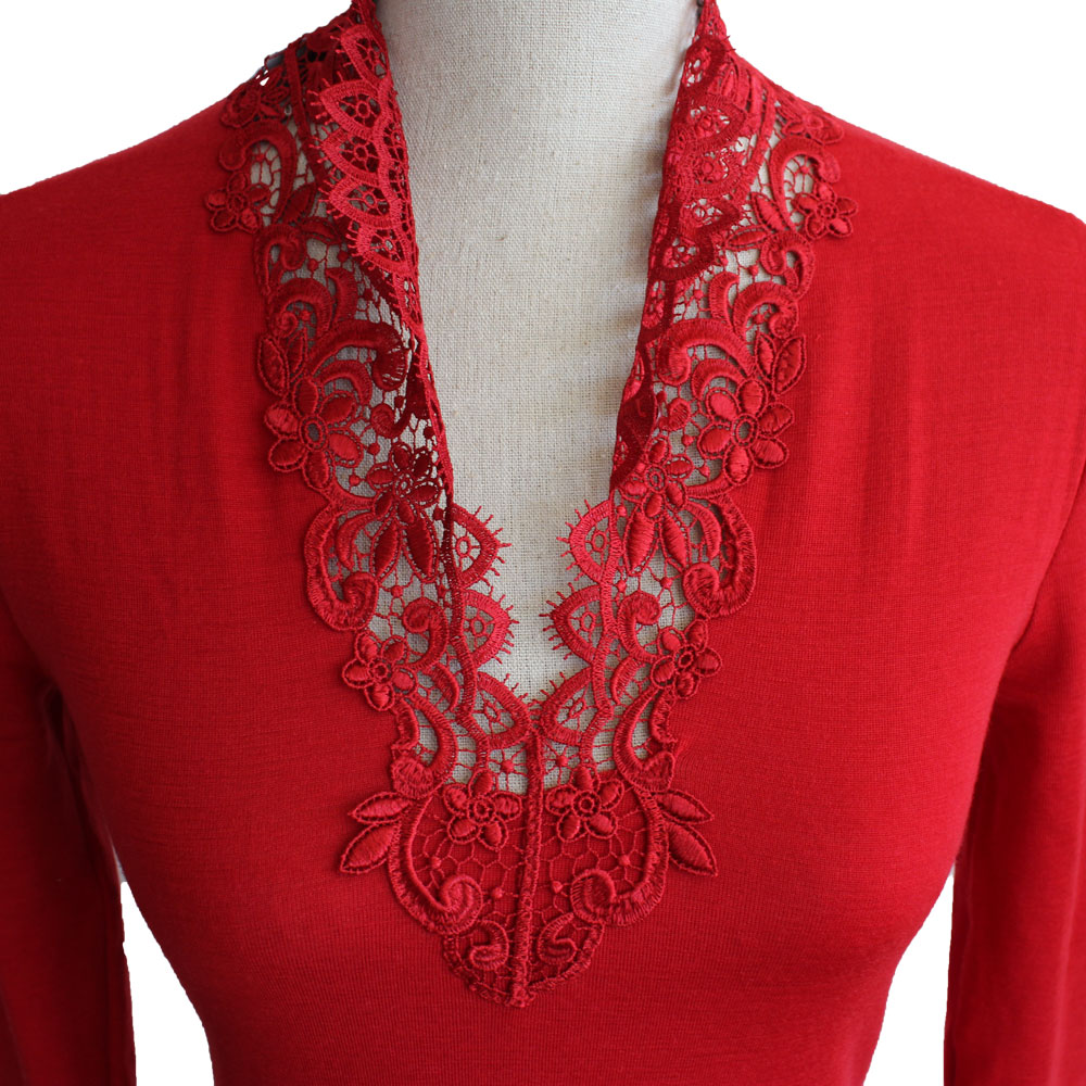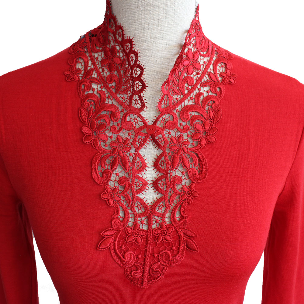 La guipure au col apporte une jolie touche féminine sous vos vestes