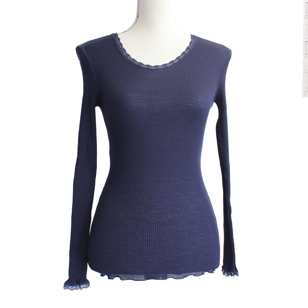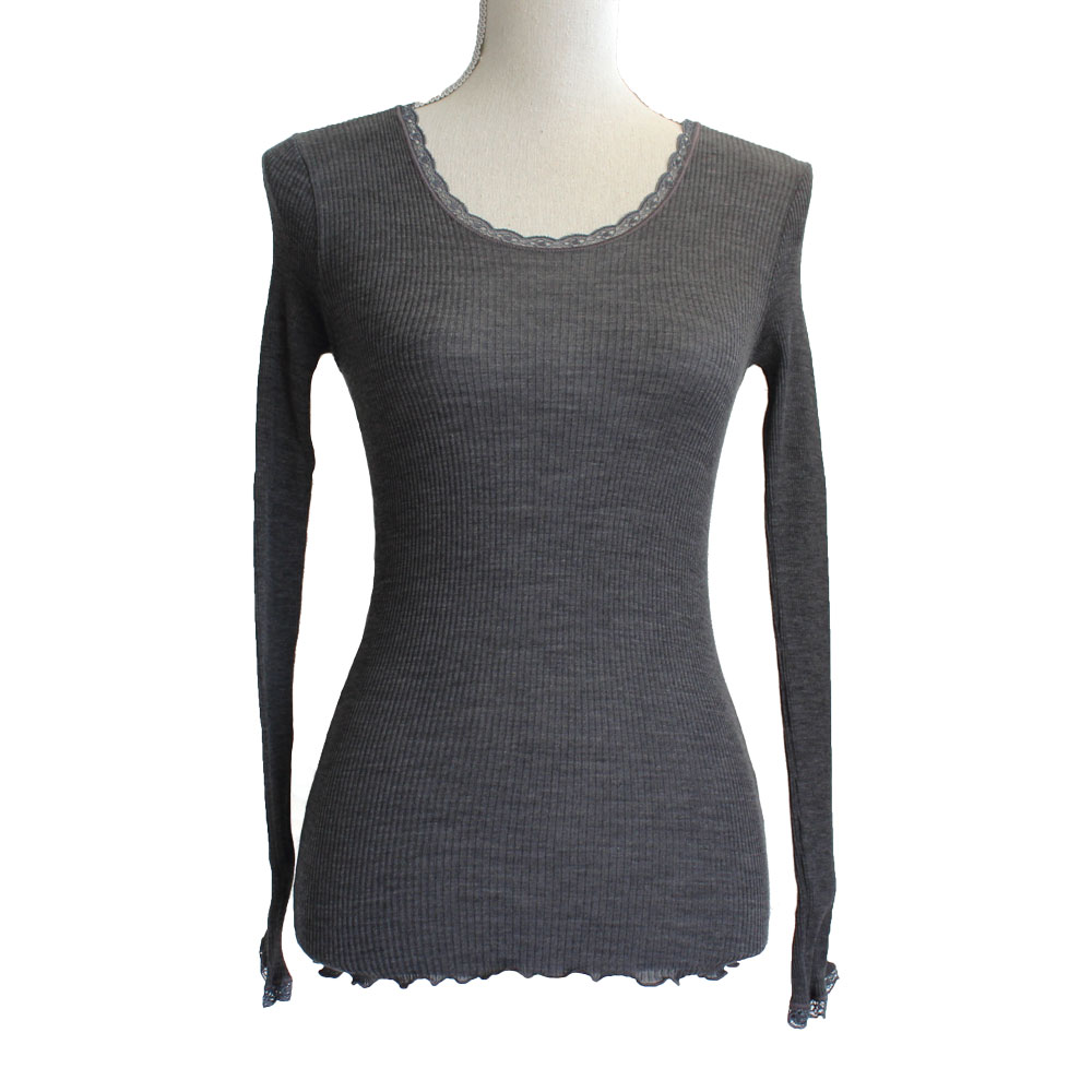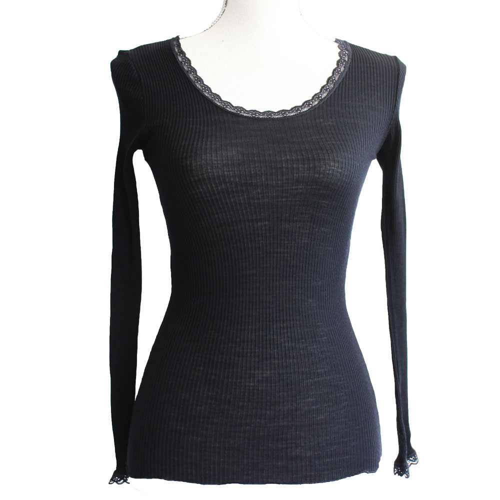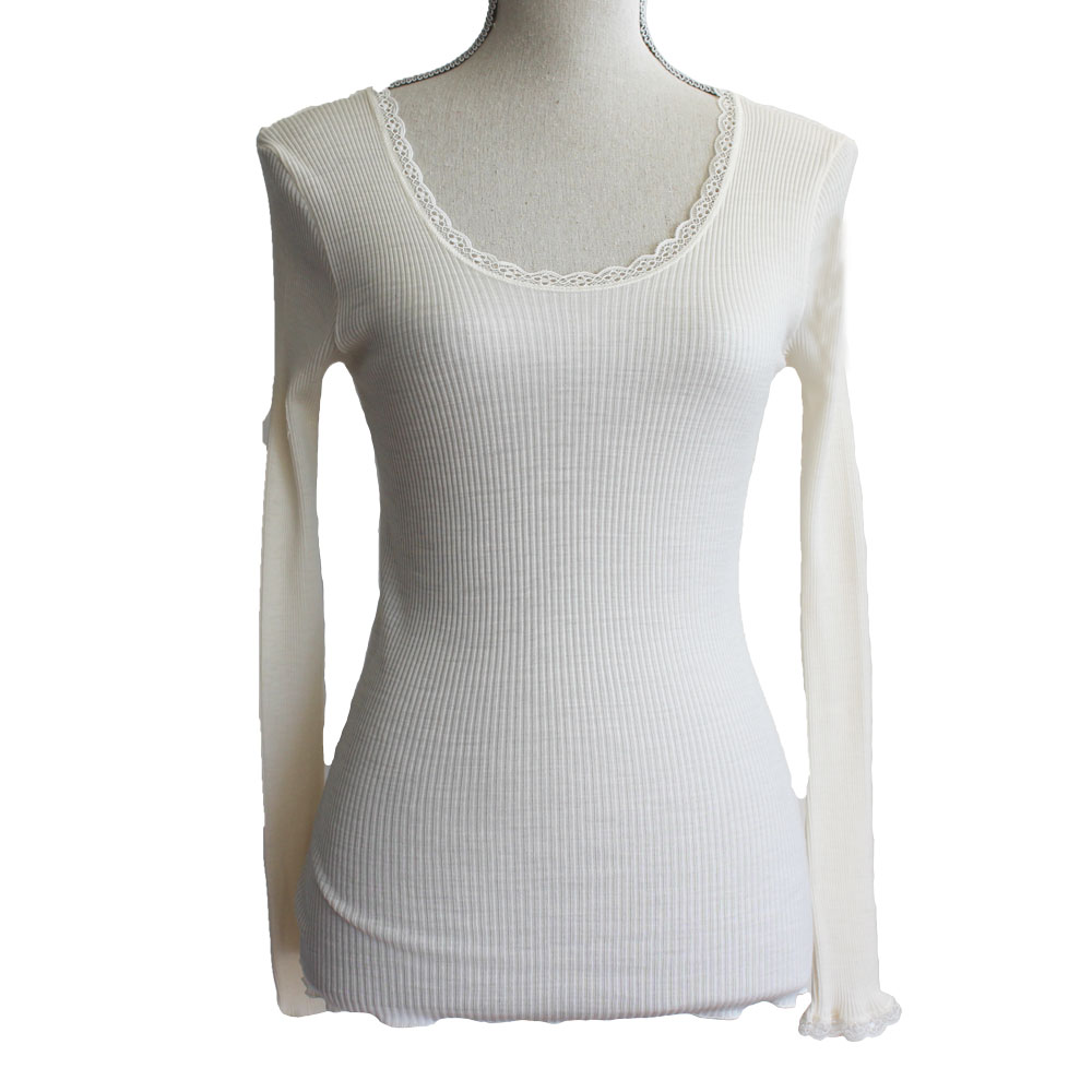 Tee shirt manches longues et encolure ronde bordée de dentelle